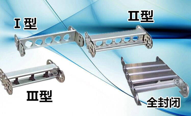 1、可承載數(shù)量多,重量大的電纜及油管,自由懸置(允許不用支承輪)長(zhǎng)度大,支撐板可依顧客需要制作,適用于工作母機(jī),移動(dòng)機(jī)械等。其彎曲半徑為50-600mm,鏈板高度為35-150mm,可任意選用。