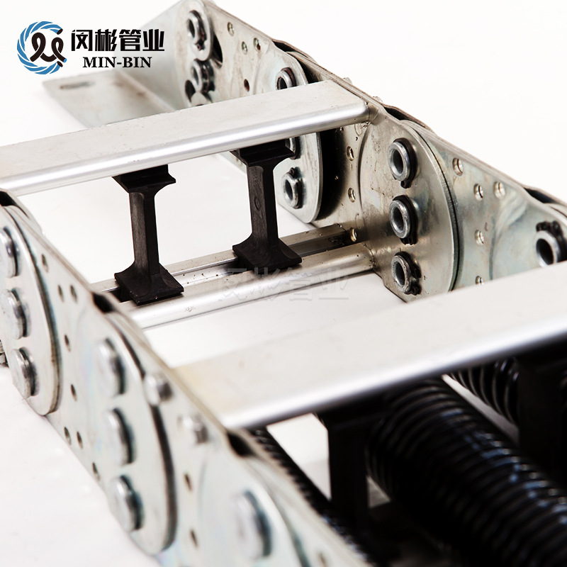 穿線拖鏈?zhǔn)卿撝仆湘湥哂懈叩膲毫涂估?fù)荷,良好的韌性高彈性耐磨性阻燃;高低溫性能穩(wěn)定,可以在室外使用。穿線鋼制拖鏈在輸送方面性能發(fā)揮最佳,尤其是進(jìn)行導(dǎo)向輸送。