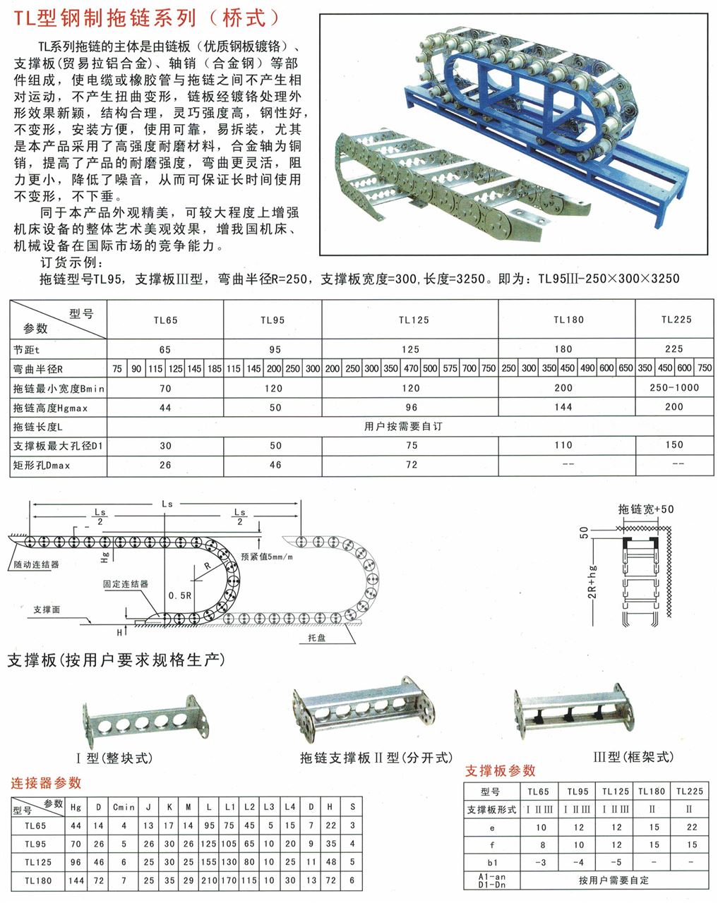 TL系列拖鏈的主體是由鏈板(優(yōu)質(zhì)鋼板鍍鉻)、支撐板(擠拉鋁合金)、軸銷(合金鋼)等部件組成,