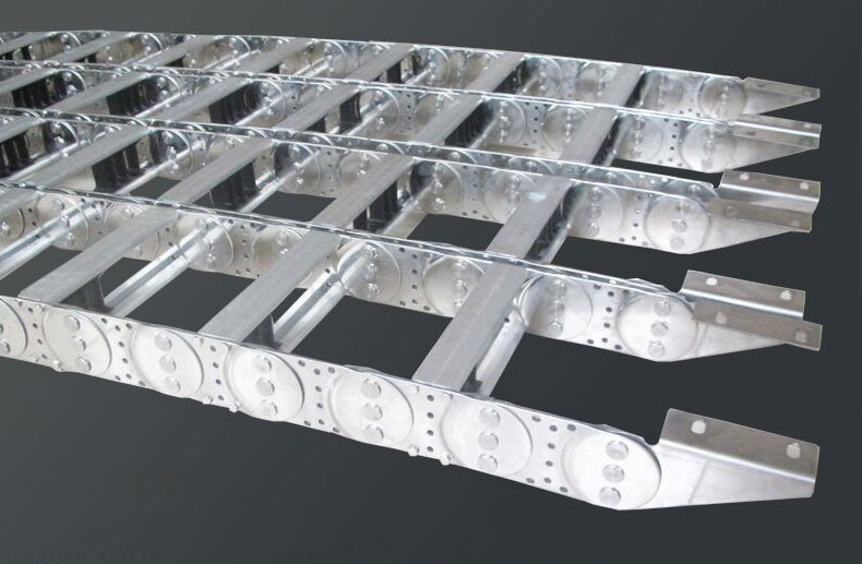 2.鋼鋁拖鏈拖鏈的支撐板寬度為 150mm 至 800mm, 孔與孔之間的間隔量為10mm.鏈板的高度也就是支撐板的高度,是由電纜最大直徑?jīng)Q定的.