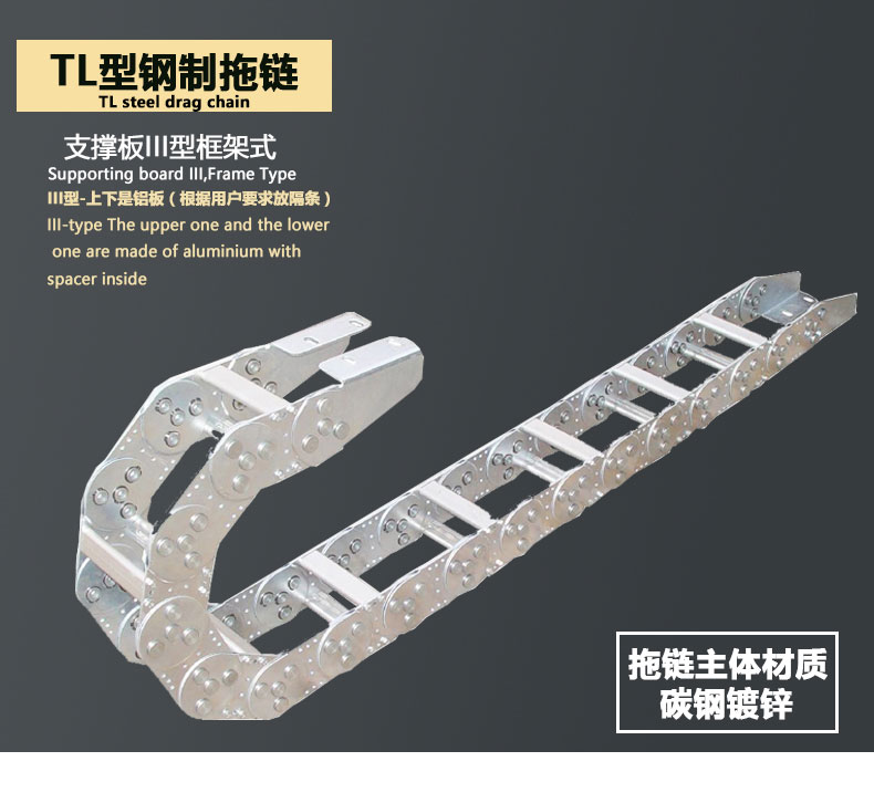 TL鋼制拖鏈:支撐板III型框架式,上下是鋁板