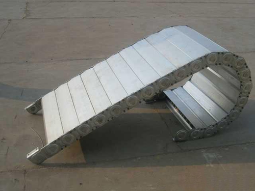 冷軋鋼和不銹鋼。拖鏈的型號(hào)、拖鏈的總寬、拖鏈的長、支撐板的型式、支撐板內(nèi)置孔的大小、拖鏈的彎曲半徑