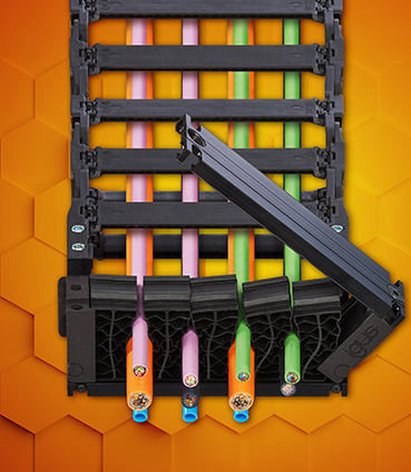 新款CFU的拖鏈接頭連接平整,可用于架空和滑行應用。這種產(chǎn)品也可對應拖鏈的不同寬度。各種電纜可直接垂直布入CFU,然后閉合CFU并擰緊。側板上的卡爪可連接拖鏈和去應力元件。通過蜂窩式去應力元件,工程師能夠在確定具體的電纜型號之前就對拖鏈和去應力進行規(guī)劃設計, 并且在后續(xù)實施中,可以進行靈活的改裝。這款蜂窩狀去應力元件目前是為E4.1L拖鏈特制的。特制的蜂窩式去應力元件搭配定制化的內部分隔系統(tǒng),讓E4.1L拖鏈成為目前市場上最易于布置電纜的拖鏈系列。